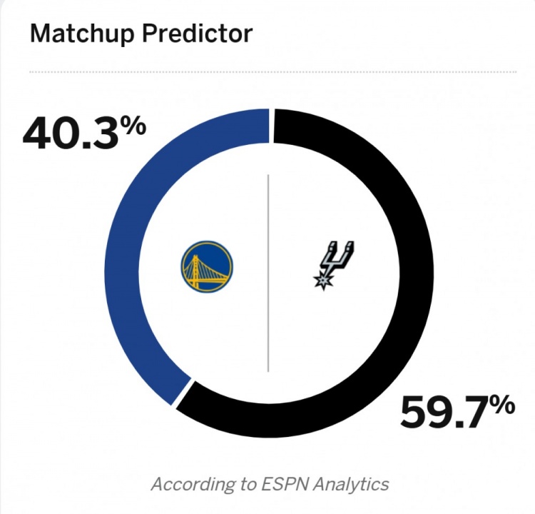 ESPN dự đoán tỷ lệ thắng trận này, với Warriors là 40,3% và Spurs là 59,7%.