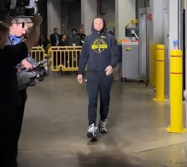Tribute cho huyền thoại Orlando! Currie mang giày đặc trưng của Penny và mang giày đặc trưng của O Pang khi bước vào địa điểm